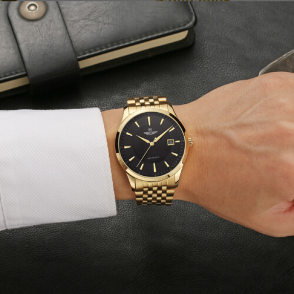 Đồng hồ nam SG8885.1401AT đen là dòng đồng hồ cơ với thiết kế sang trọng, cá tính với dây đeo và vỏ máy bằng thép không gỉ mạ vàng sang trọng công nghệ cao giúp tăng tuổi thọ lớp xi mạ, các cọc số và kim chỉ thanh mảnh được mạ vàng nổi bật trên nền đồng hồ đen mạnh mẽ, mặt kính sapphire chống trầy bảo vệ máy, có lịch ngày đi kèm.