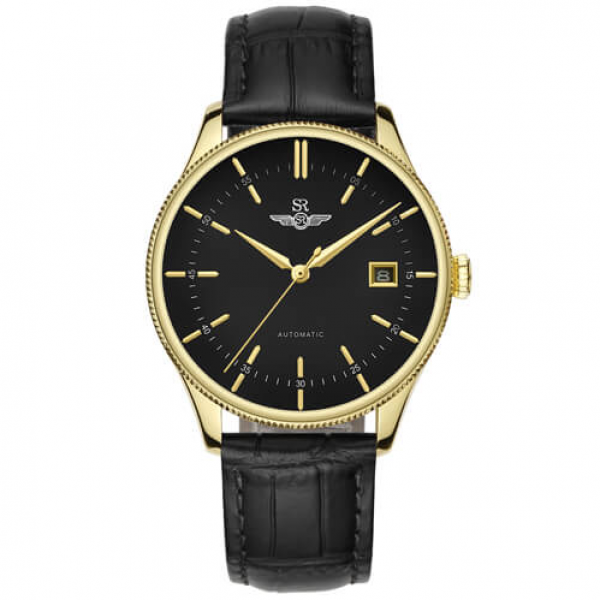 Đồng hồ nam SG8886.4601AT đen thiết kế sang trọng, mạnh mẽ với vỏ máy bằng thép không gỉ mạ vàng công nghệ cao, dây đeo bằng da có vân cao cấp, nền số màu đen có niềng kim loại mạ vàng bo tròn có khứa xung quanh nền số, các cọc số và kim chỉ mạ vàng nổi bật, mặt kính sapphire chống trầy, có 1 lịch ngày đi kèm.