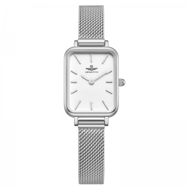 Đồng hồ nữ mặt vuông SRWATCH SL1610.1102TE có vỏ màu trắng,vạch chỉ giờ thanh mảnh và kim giờ màu trắng mang đến vẻ thanh lịch-tinh tế cho phái đẹp.Mặt đồng hồ hình chữ nhật kết hợp với dây đeo dạng lưới bằng thép không gỉ.Đồng hồ chạy bằng pin,có mặt kính sapphire chống xước cao cấp và khả năng chống nước 5ATM mang đến sự an tâm cho người dùng.